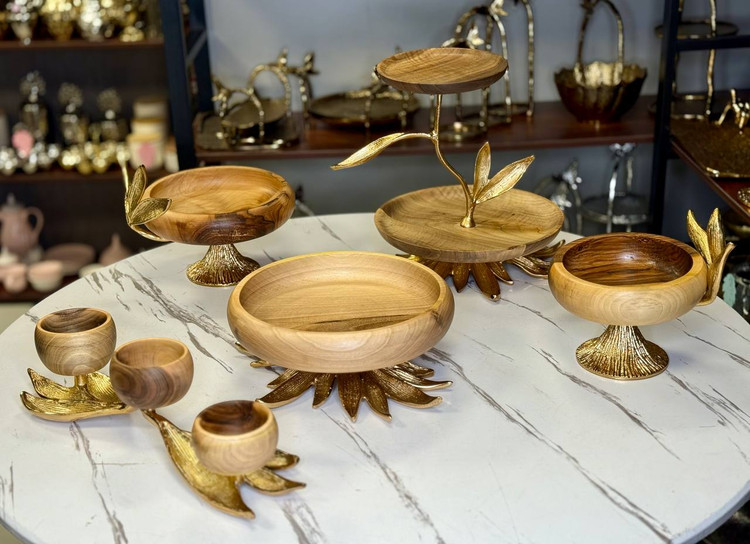 سرویس ۵ تکه گلبرگ با چوب گردو ۲ رنگ پایه طلایی ونقره