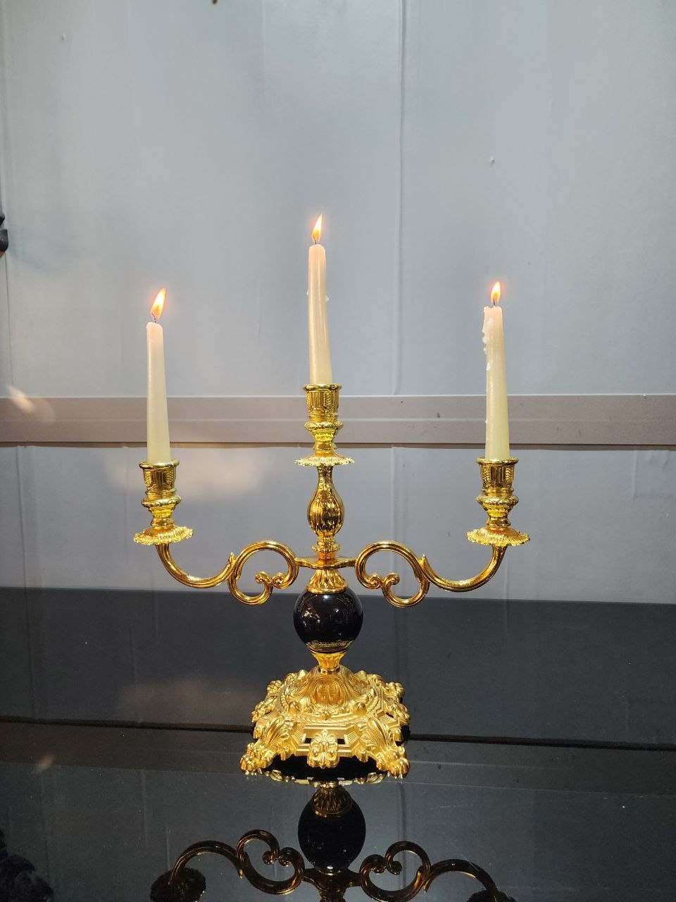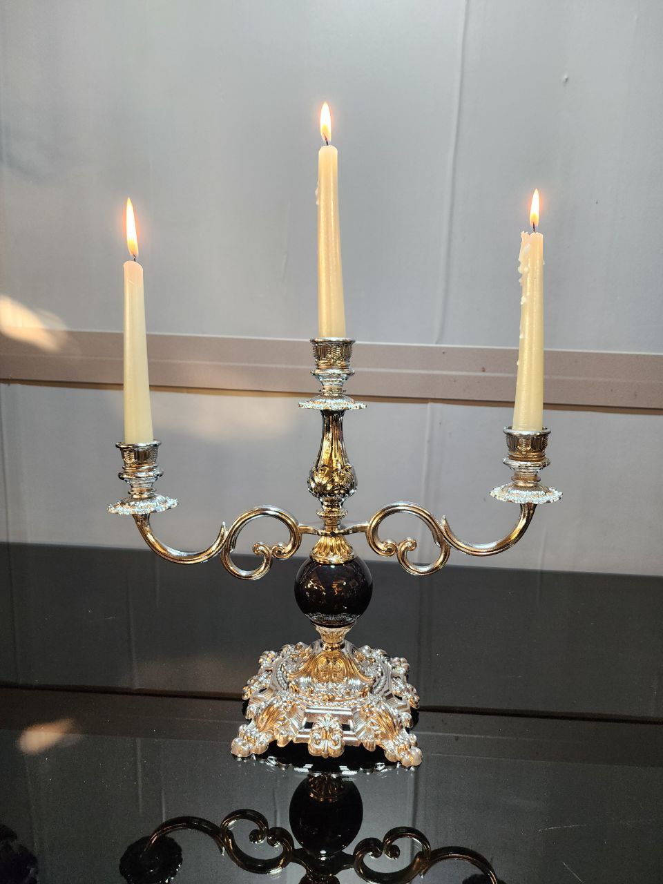 جنس بدنه آلومینیوم با گوی شیشهای مشکی در دو رنگ نقره ای و طلایی جاشمعی دیواری و گلدان ست اینکار موجود میباشد