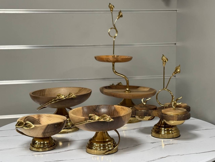 سرویس ۵ تکه لیلیوم چوبگردو ظرف شیرینی ۲ طبقه تک کارتن و کارتن مادر قیمت