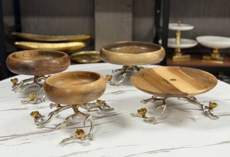 سرویس ۴ تکه ریشه چوب گردو رنگ پایه نقره