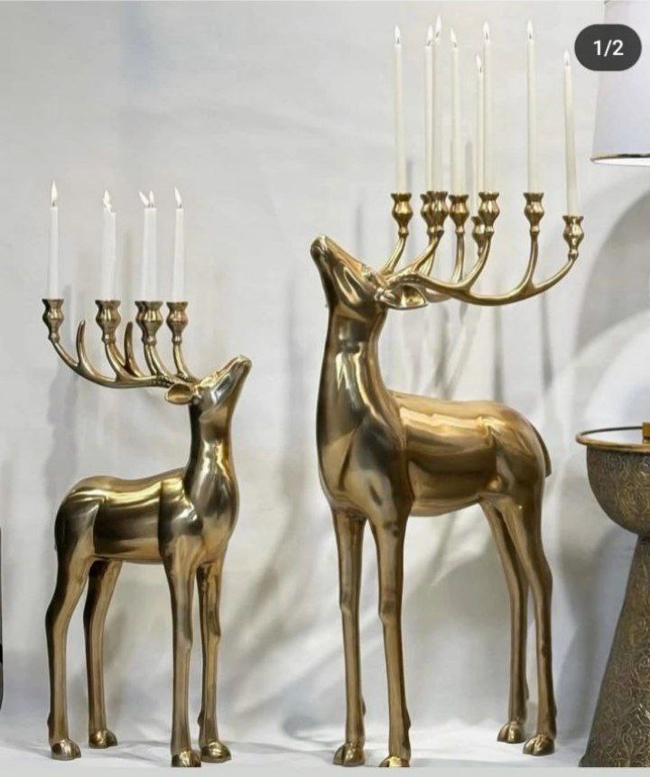 شمعدان سالنی گوزن جنس آلومینیوم ارتفاع ۸۵ و ۱۱۰ سانت طلایی و نقره ای قیمت سایز کوچک ۱۲.۷۰۰.۰۰۰ تومان قیمت سایز بزرگ ۱۴.۹۰۰.۰۰۰ تومان