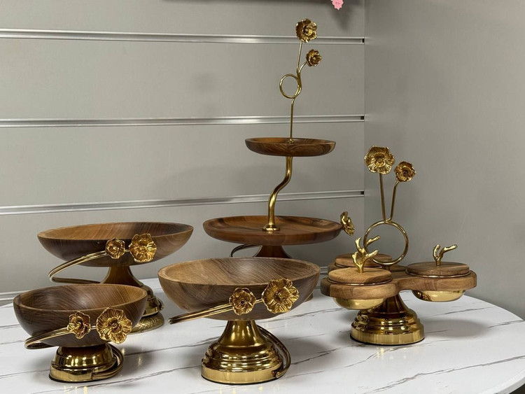 سرویس ۵ تکه شقایق چوبگردو شیرینی ۲ طبقه تک کارتن و کارتن مادر